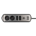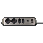 brennenstuhl Eck-Steckdosenleiste – 2x Schutzkontakt, 2x Euro und 2x USB Ladebuchsen, estilo Serie – Silber/Schwarz