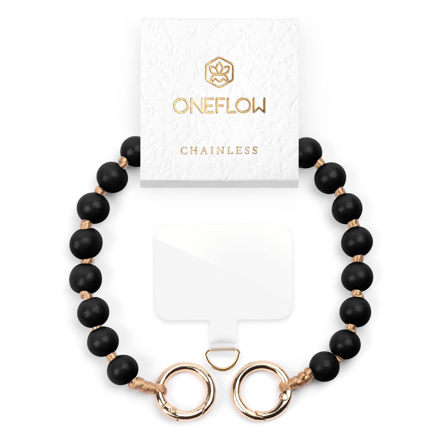 ONEFLOW Holzperlen Handyanhänger Universal – Chainless Terra Chain – Obsidian Black (Schwarz)