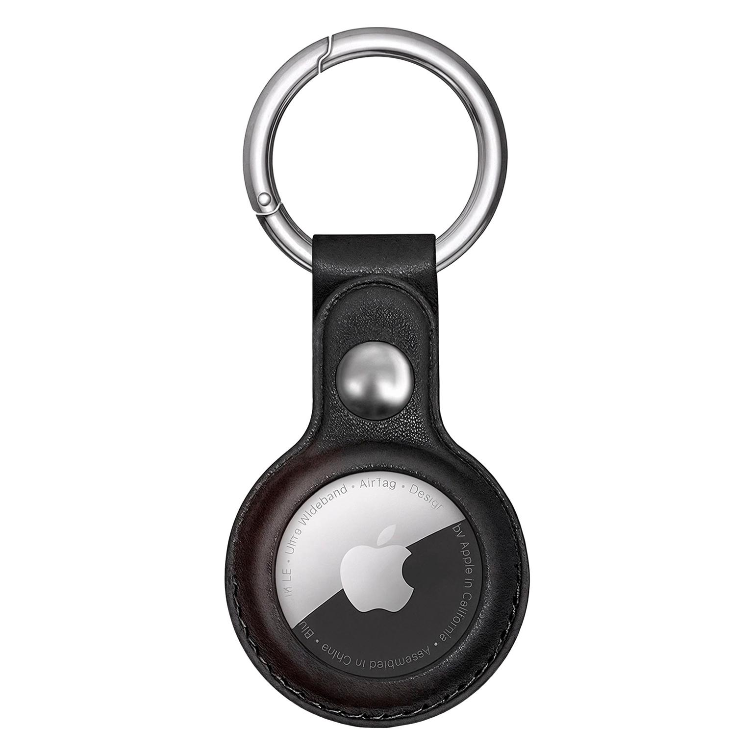 moex Apple AirTag Hülle aus PU Leder mit Schlüsselanhänger – TrackLoopSchwarz