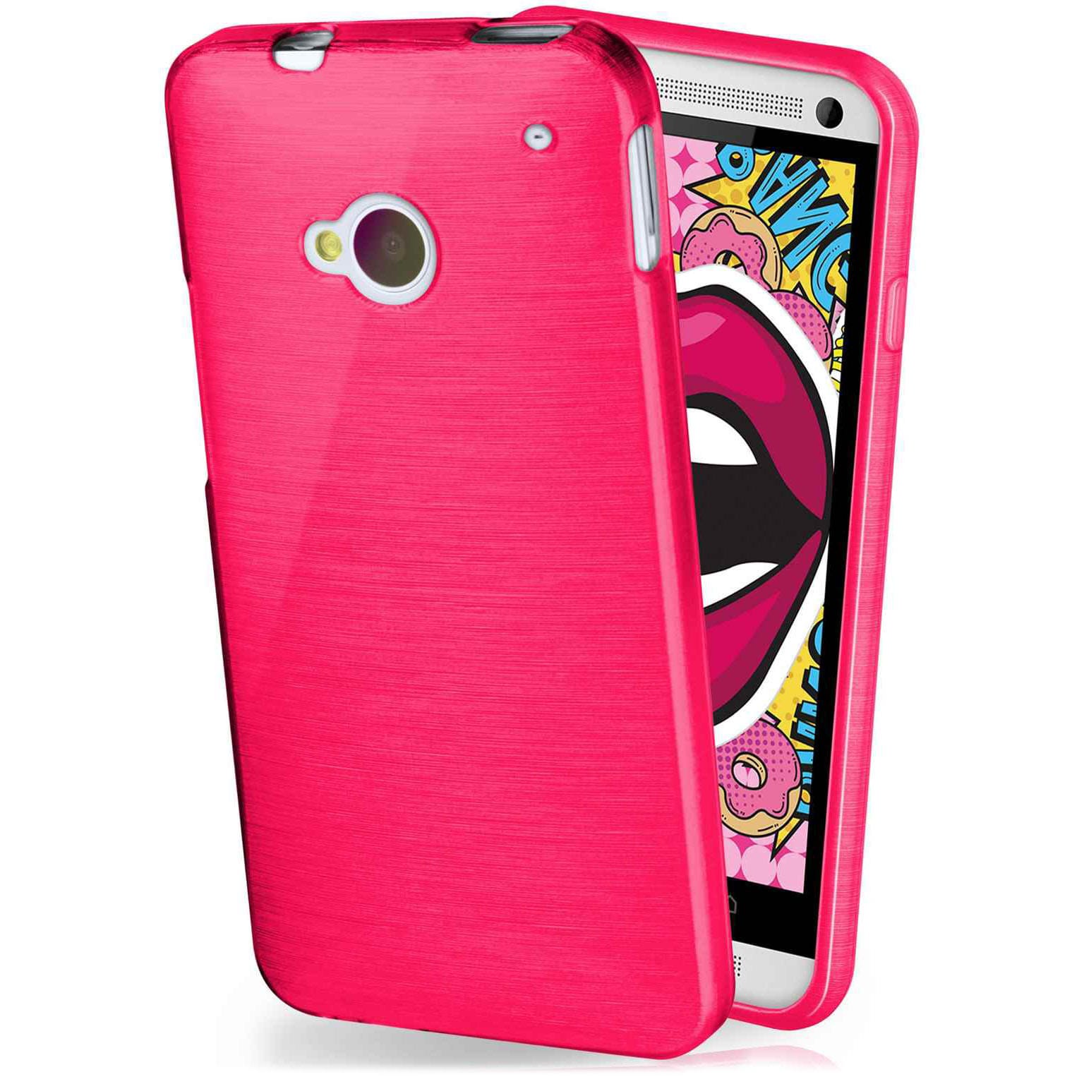 moex Brushed Case für HTC One M7 – Silikon Handyhülle, Backcover in Aluminium Optik – Magenta-Pink (Rosa / Pink)