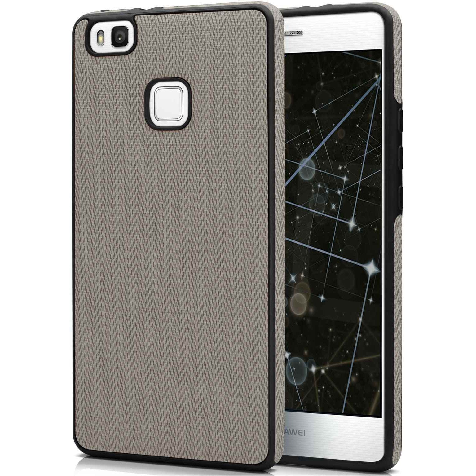 Die Handy-Hülle verfügt über Textil-Applikationen mit besonderem Fischgrätmuster, die Abdeckung ist extra dünn und liegt wie eine zweite Haut auf dem Huawei P 9 Lite .