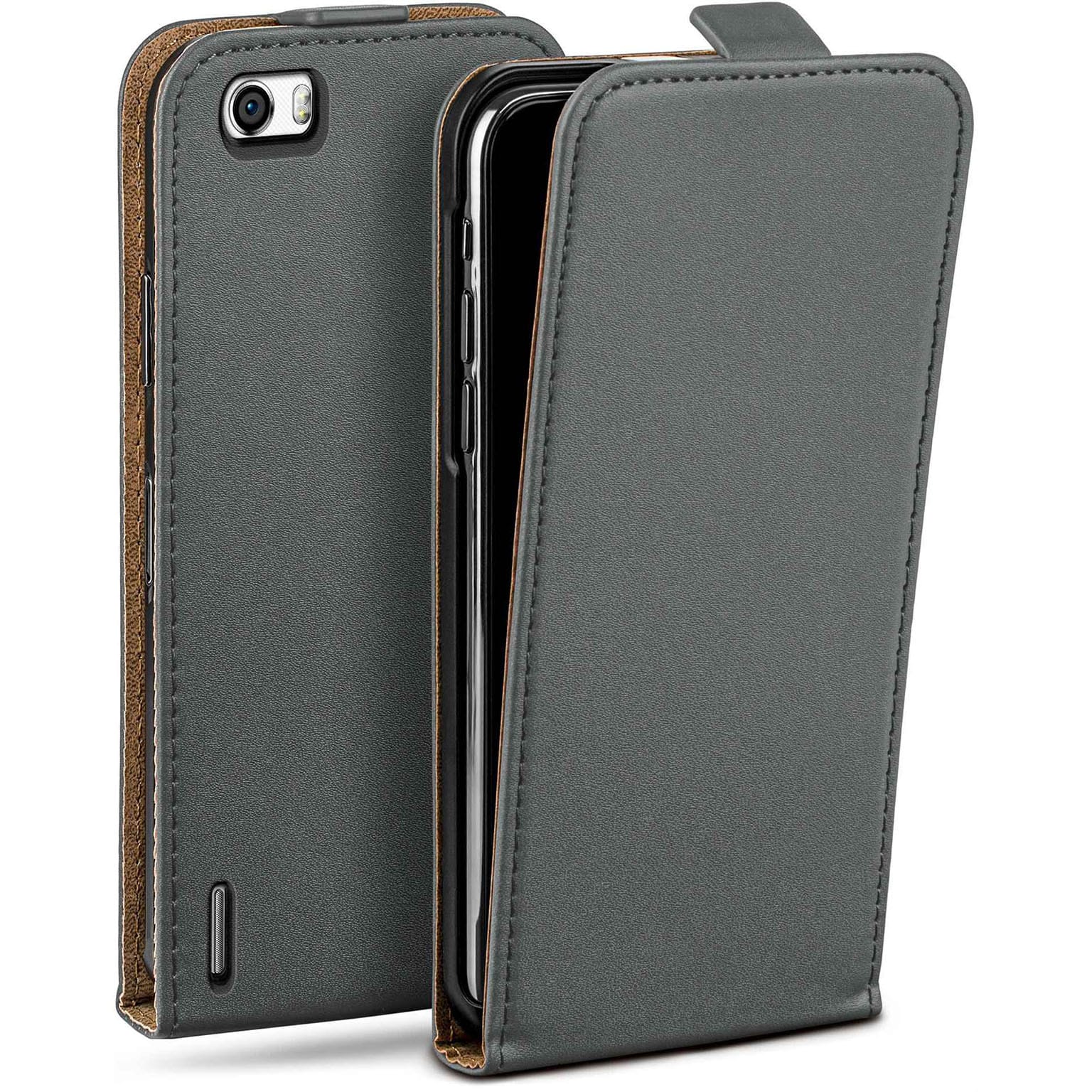 moex Flip Case Huawei Honor 6 Klapphülle Leder Optik – Anthracite-Gray (Grau)