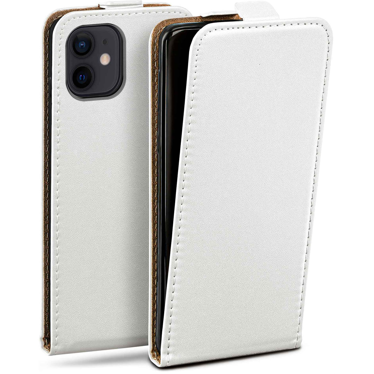 moex Flip Case iPhone 12 mini Klapphülle Leder Optik – Pearl-White (Weiß)