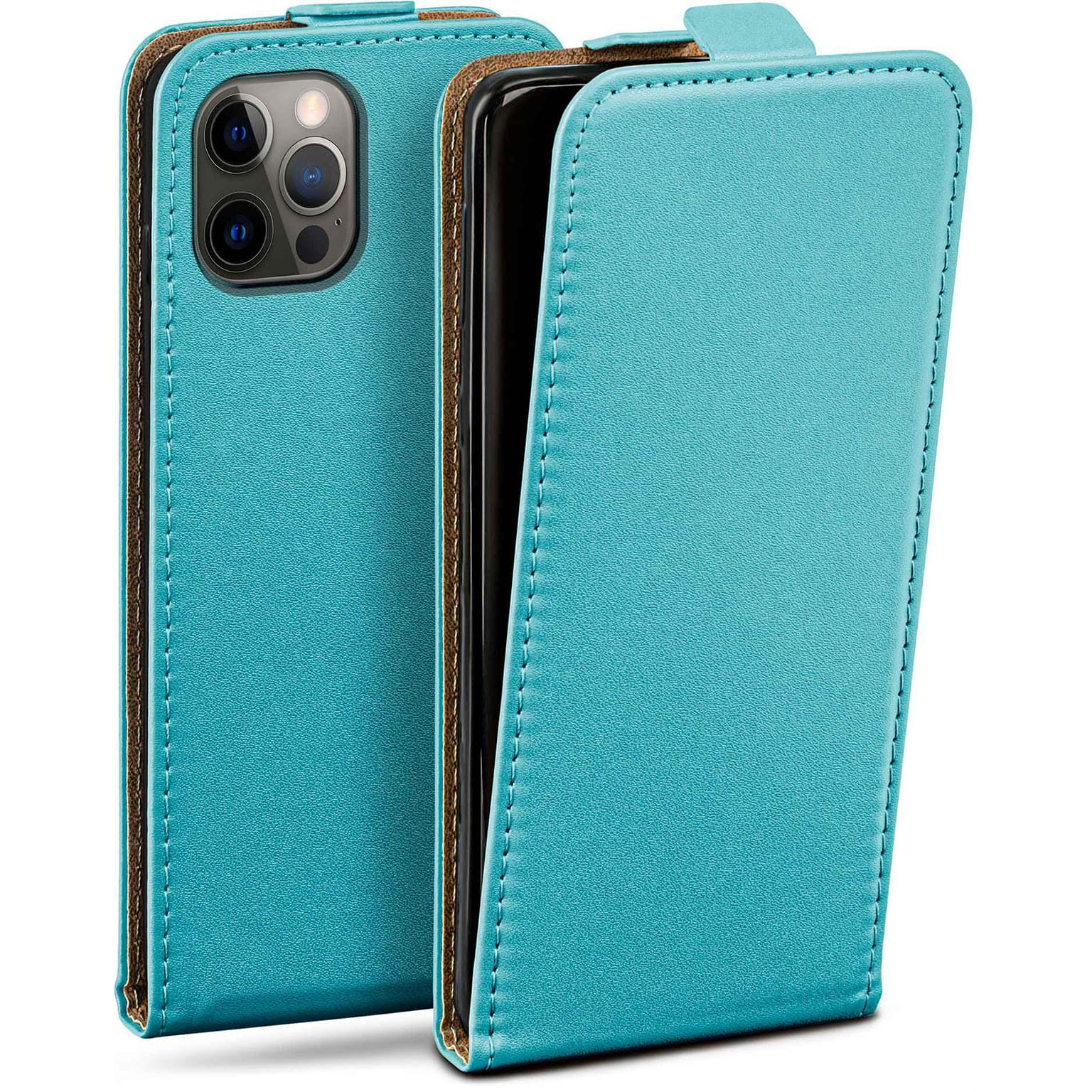moex Flip Case iPhone 12 Pro Klapphülle Leder Optik – Aqua-Cyan (Mint / Türkis)
