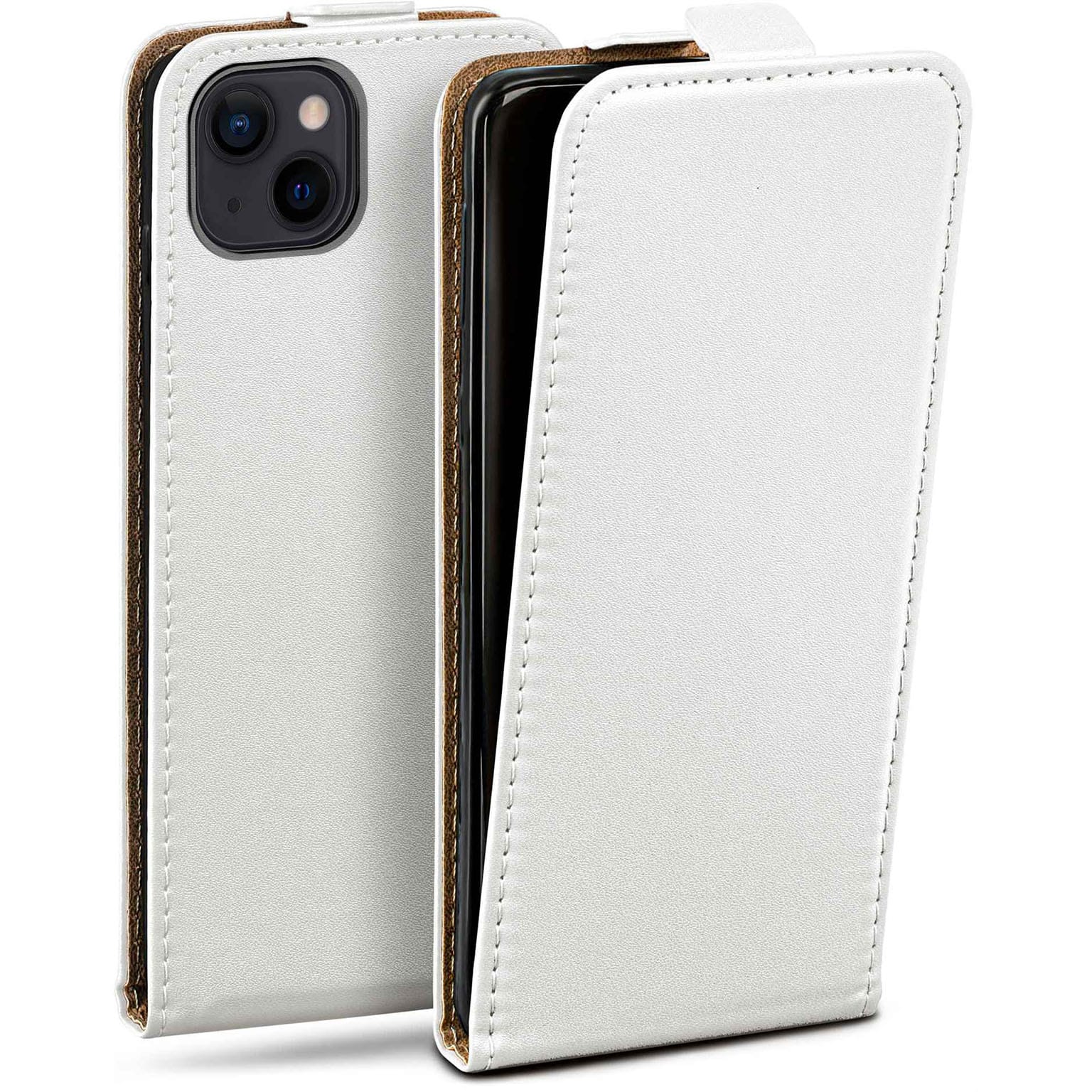 moex Flip Case iPhone 13 mini Klapphülle Leder Optik – Pearl-White (Weiß)