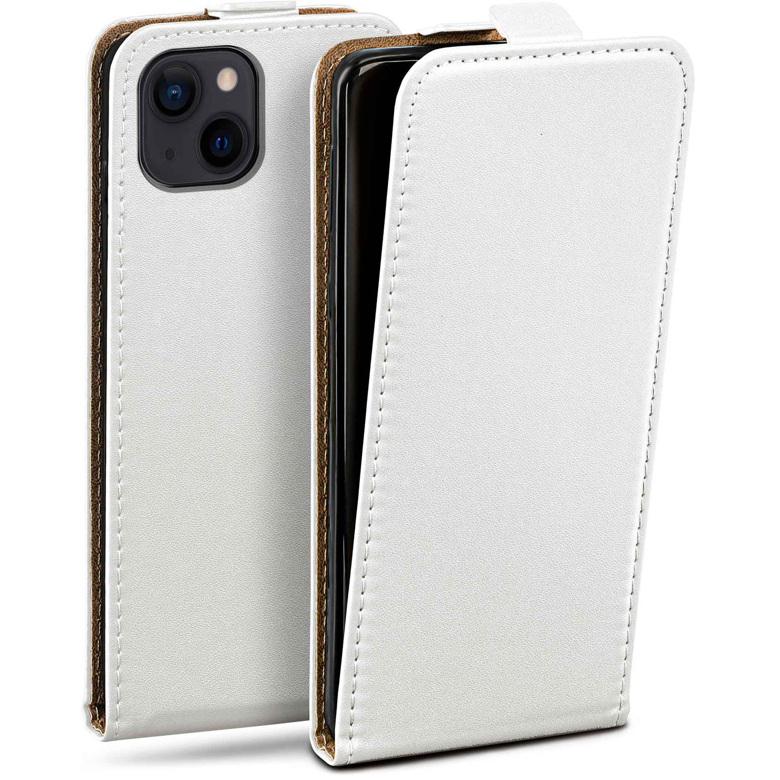 moex Flip Case iPhone 14 Plus Klapphülle Leder Optik – Pearl-White (Weiß)