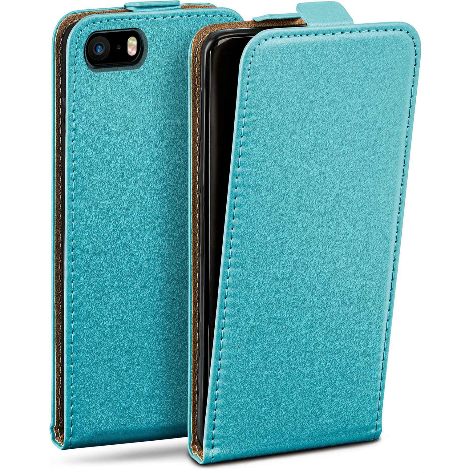 moex Flip Case iPhone SE (2016) Klapphülle Leder Optik – Aqua-Cyan (Mint / Türkis)
