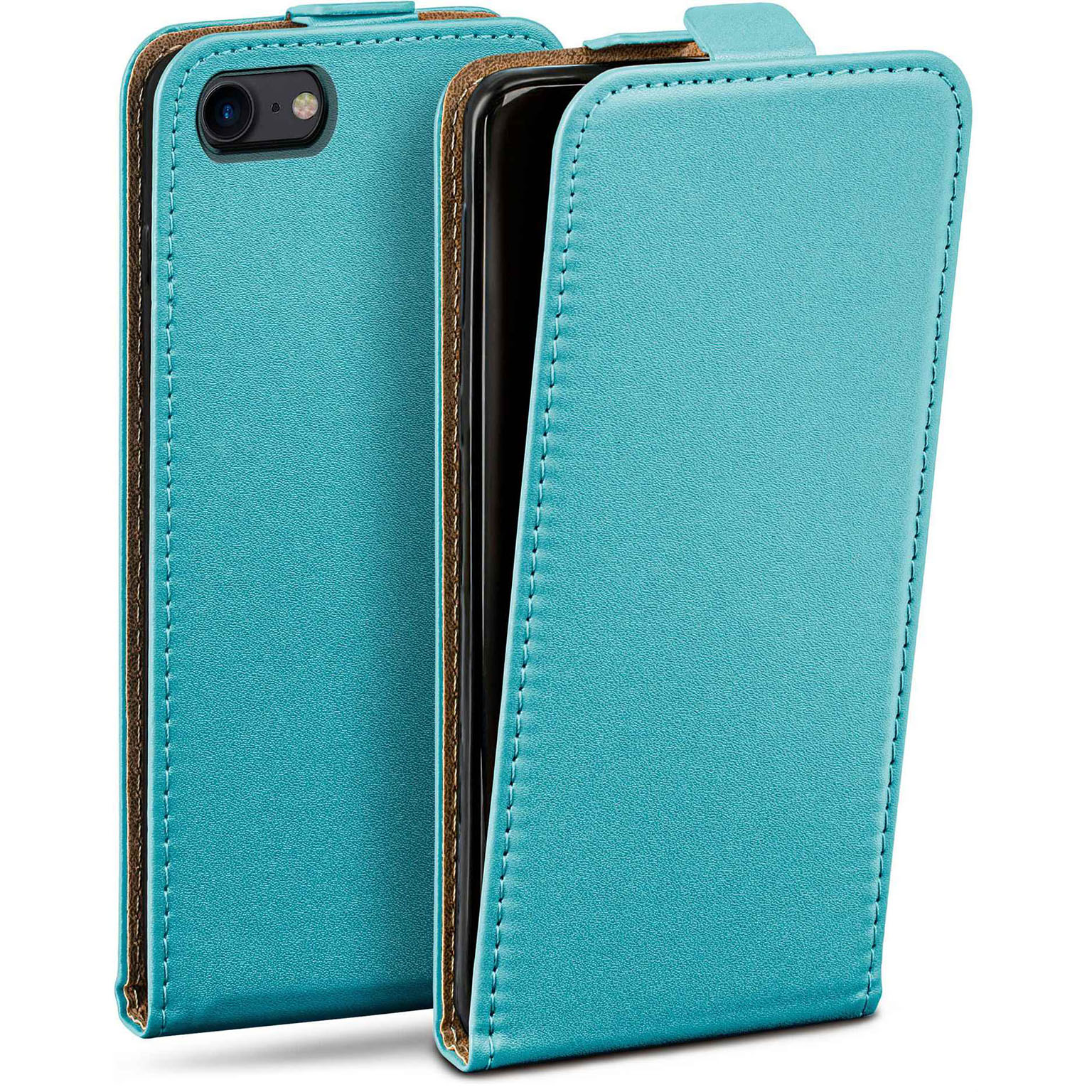 moex Flip Case iPhone SE (2022) Klapphülle Leder Optik – Aqua-Cyan (Mint / Türkis)