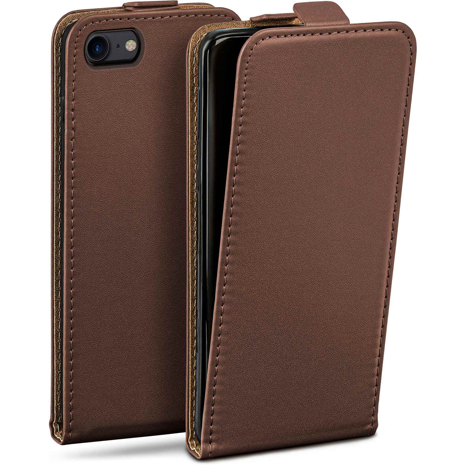 moex Flip Case für iPhone SE (2022) – Klassische Leder-Klapphülle mit 360° Schutz