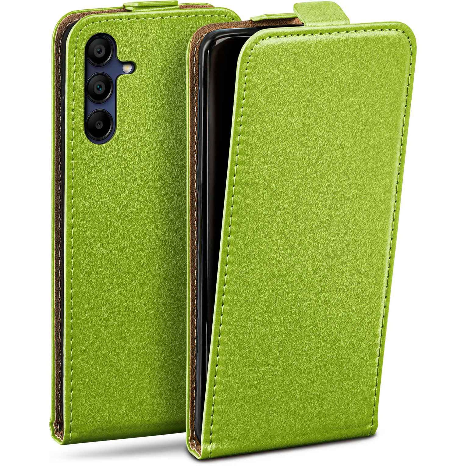moex Flip Case Samsung Galaxy A15 (4G) Klapphülle Leder Optik – Lime-Green (Grün)