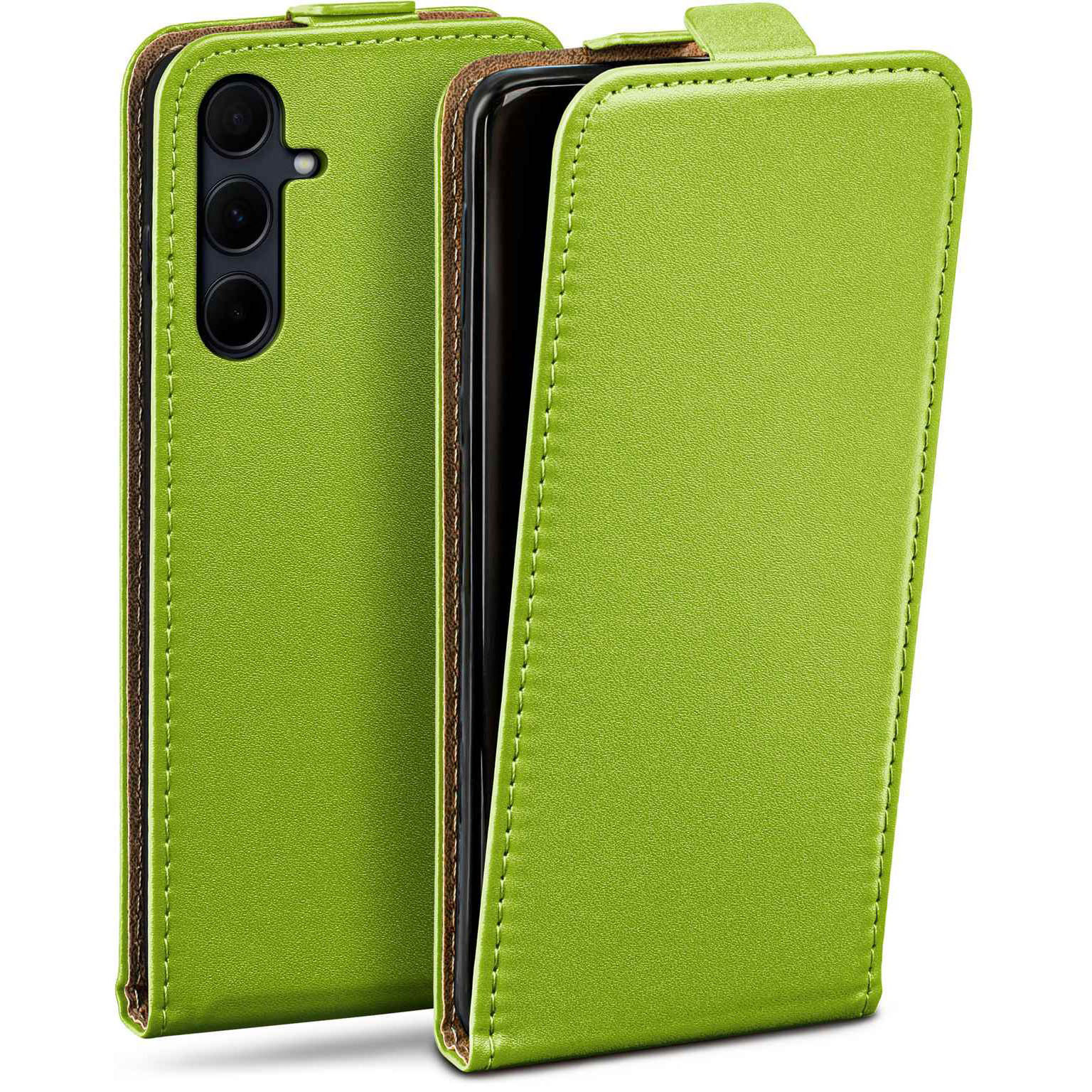 moex Flip Case Samsung Galaxy A35 5G Klapphülle Leder Optik – Lime-Green (Grün)