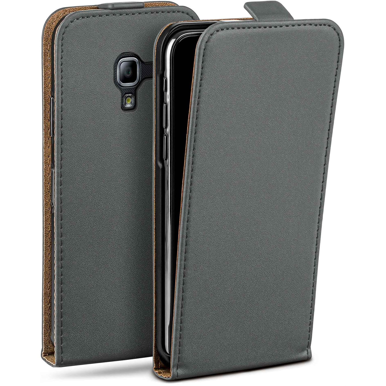 moex Flip Case Samsung Galaxy Ace 2 Klapphülle Leder Optik – Anthracite-Gray (Grau)