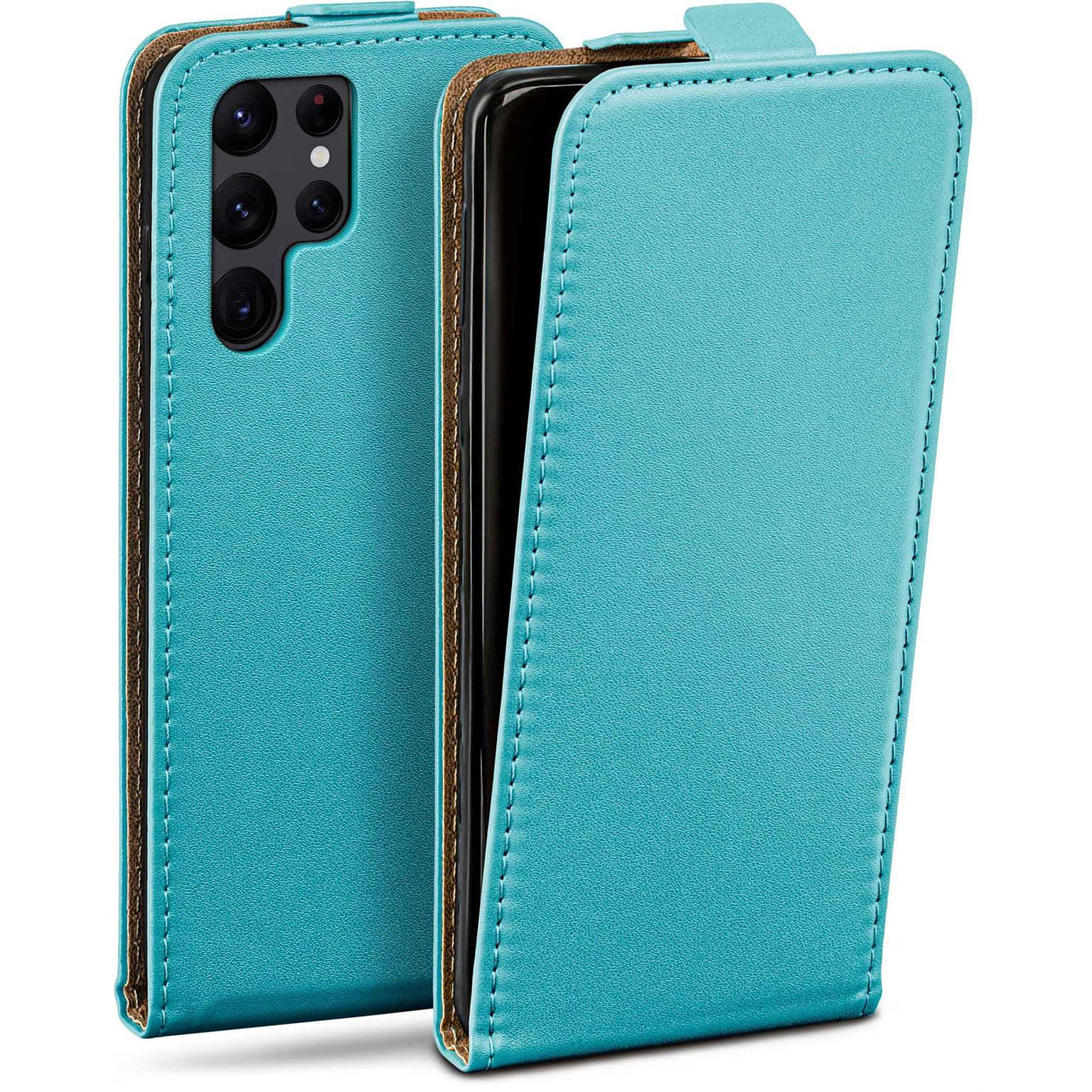 moex Flip Case Samsung Galaxy S22 Ultra Klapphülle Leder Optik – Aqua-Cyan (Mint / Türkis)