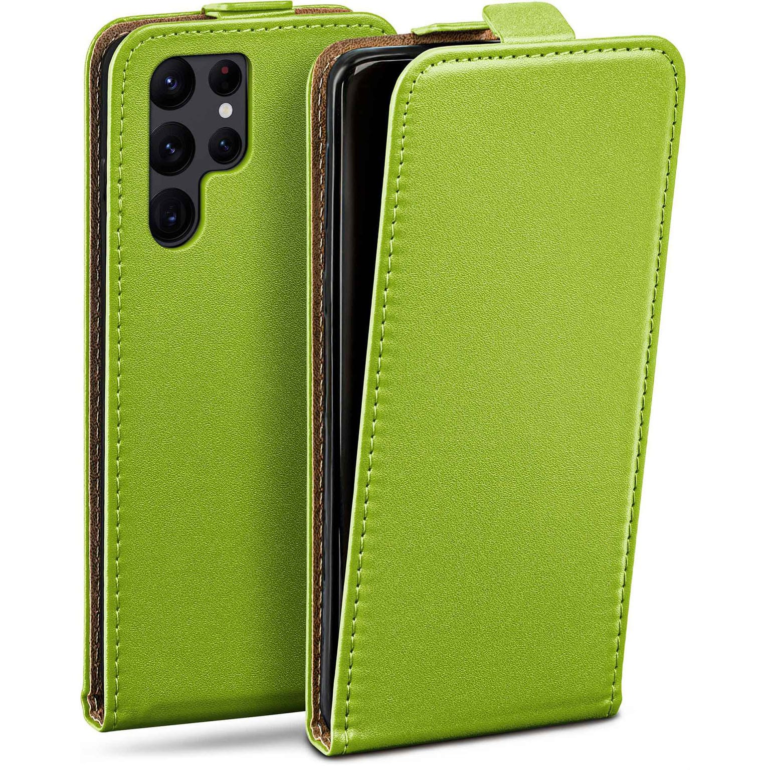 moex Flip Case Samsung Galaxy S22 Ultra Klapphülle Leder Optik – Lime-Green (Grün)