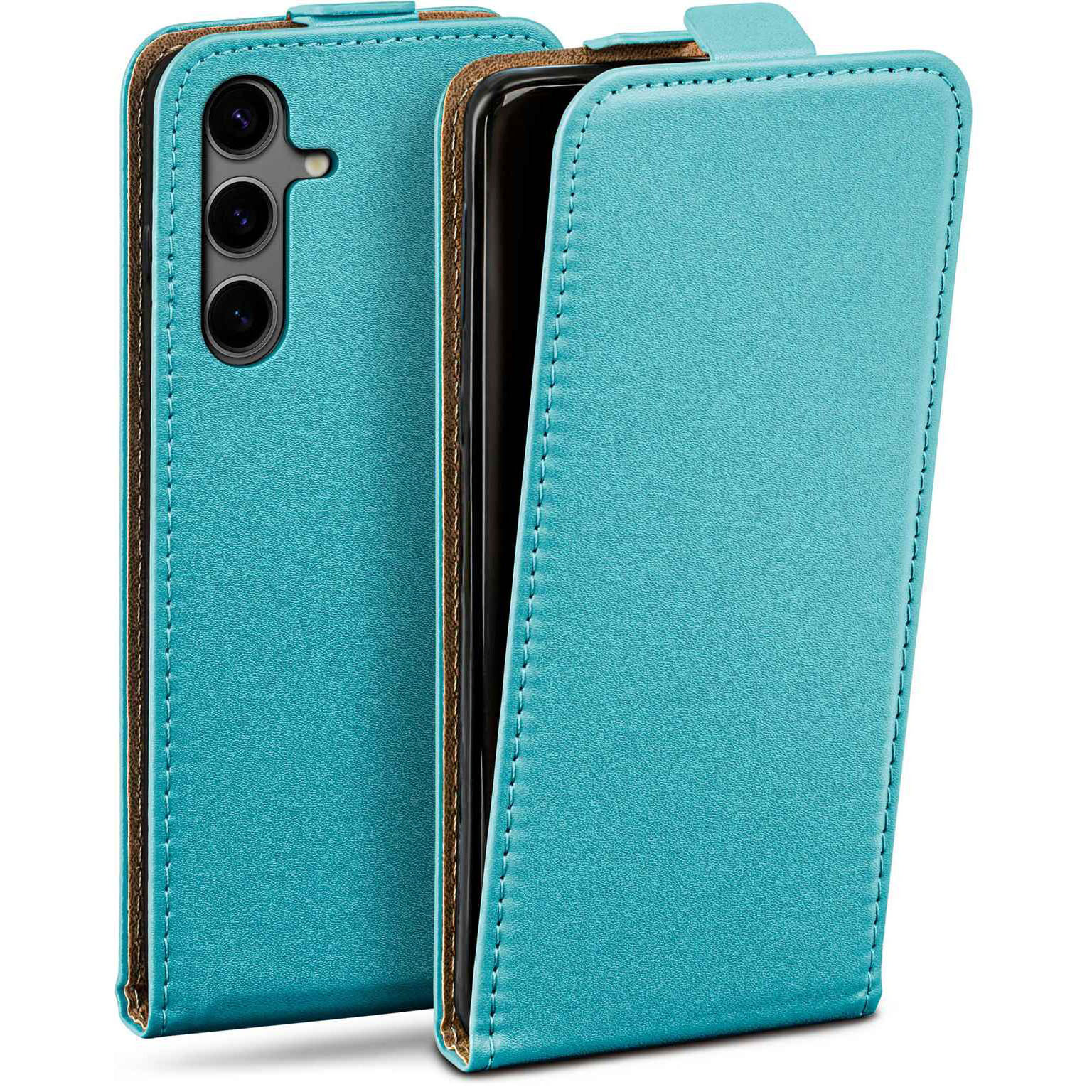 moex Flip Case Samsung Galaxy S24 Klapphülle Leder Optik – Aqua-Cyan (Mint / Türkis)