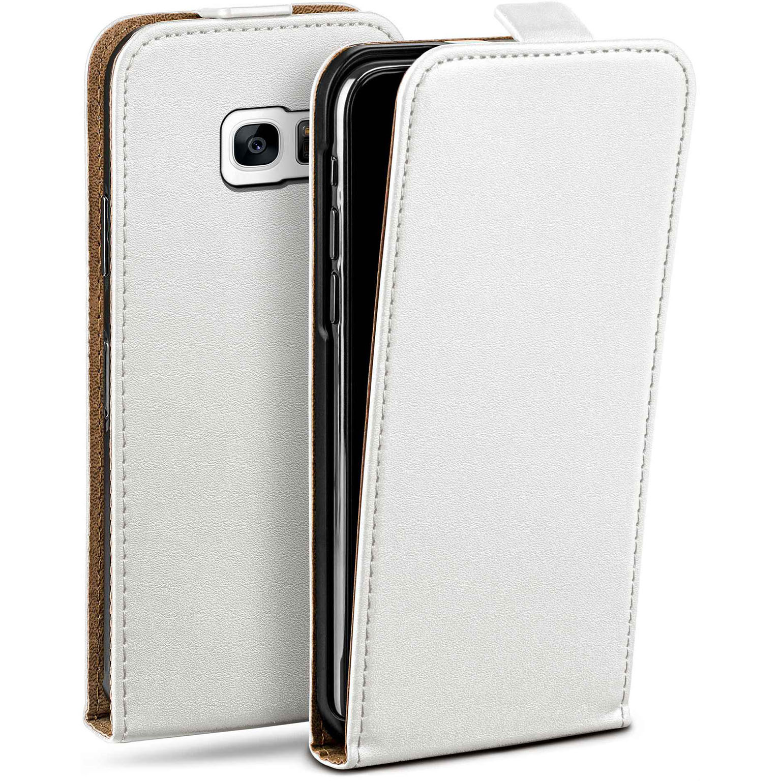 moex Flip Case Samsung Galaxy S7 Edge Klapphülle Leder Optik – Pearl-White (Weiß)