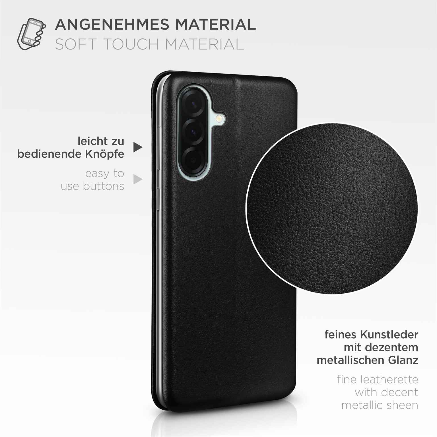 Das ONEFLOW Business Case bietet deinem Samsung Galaxy A57 5G optimalen Schutz und vielseitige Funktionen in einem schlanken Design. Diese klappbare Handyhülle aus hochwertigem Kunstleder vereint Stil und Funktionalität. Mit integrierten Kartenfächern hast du wichtige Karten stets griffbereit, während die Standfunktion komfortables Ansehen von Videos ermöglicht. Das dünne Booklet-Design schützt dein Smartphone rundum und bewahrt gleichzeitig seine elegante Optik. Präzise Aussparungen gewährleisten den uneingeschränkten Zugriff auf alle Anschlüsse und Funktionen.