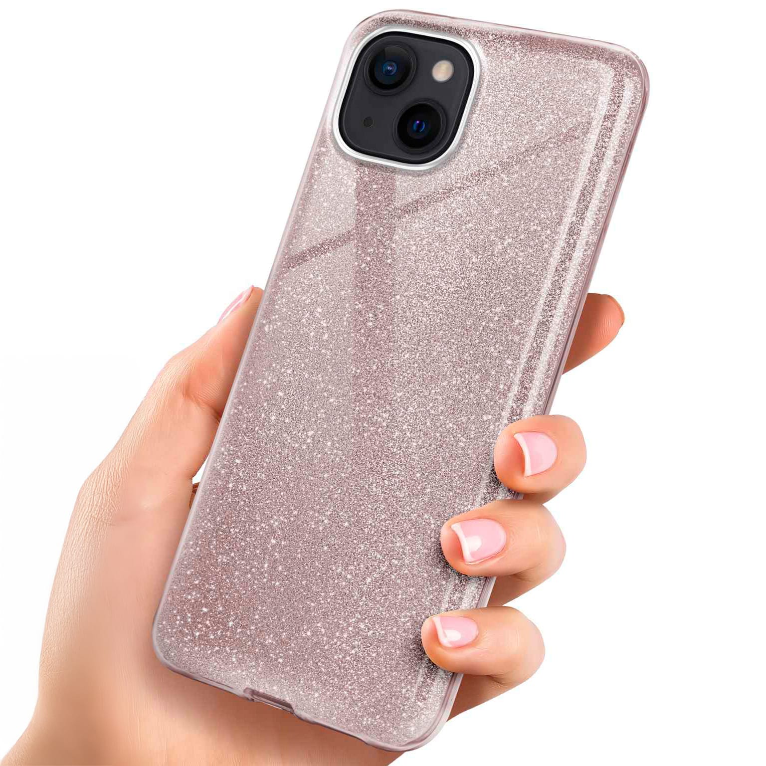 ONEFLOW Glitter Case iPhone 15 mit Glitzer Look – Gloss-Rosé (Roségold)