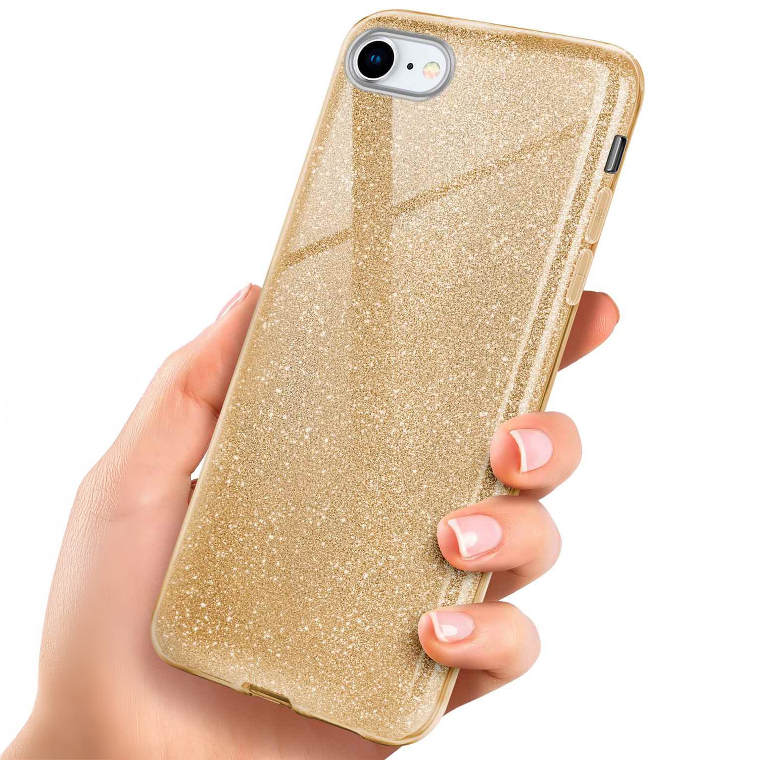 ONEFLOW Glitter Case iPhone 8 mit Glitzer Look – Shine-Gold