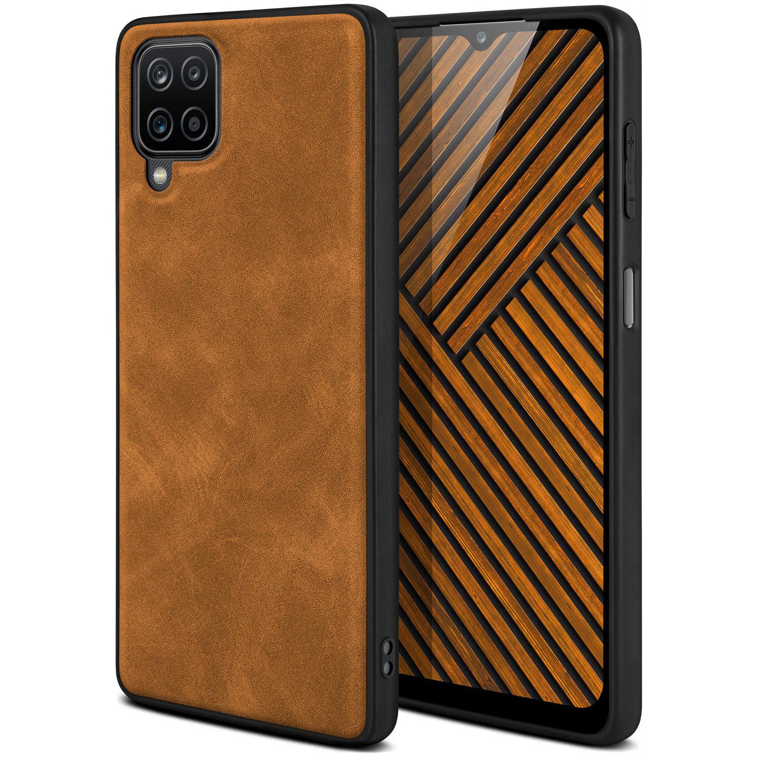 ONEFLOW Pali Case Samsung Galaxy A12 Case Leder Optik – Sattelbraun (Braun / Beige)
