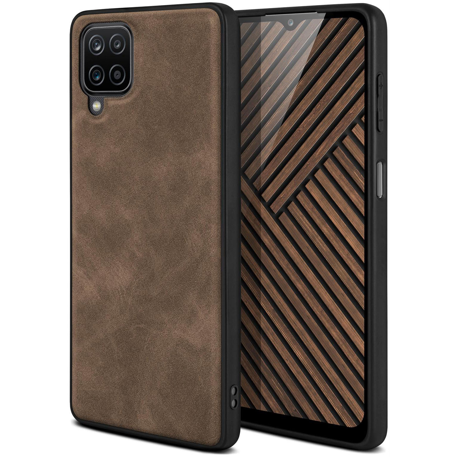 Der hybride Mix aus flexiblem, beständigem Silikon und robustem, pflegeleichtem Kunstleder macht die Samsung Galaxy-A12 Handyschutzhülle zu einem einzigartigen Accessoire.