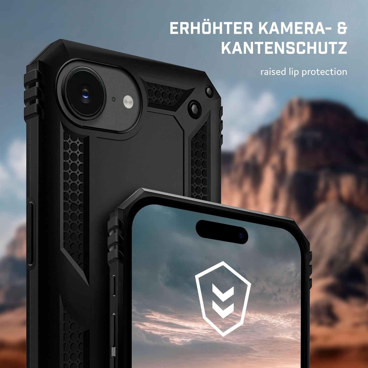 Die matt beschichtete Panzer Handyhülle kombiniert Hartschale & stoßdämpfende Silikonschicht – perfekter Grip für dein Apple iPhone 17e in allen Situationen.