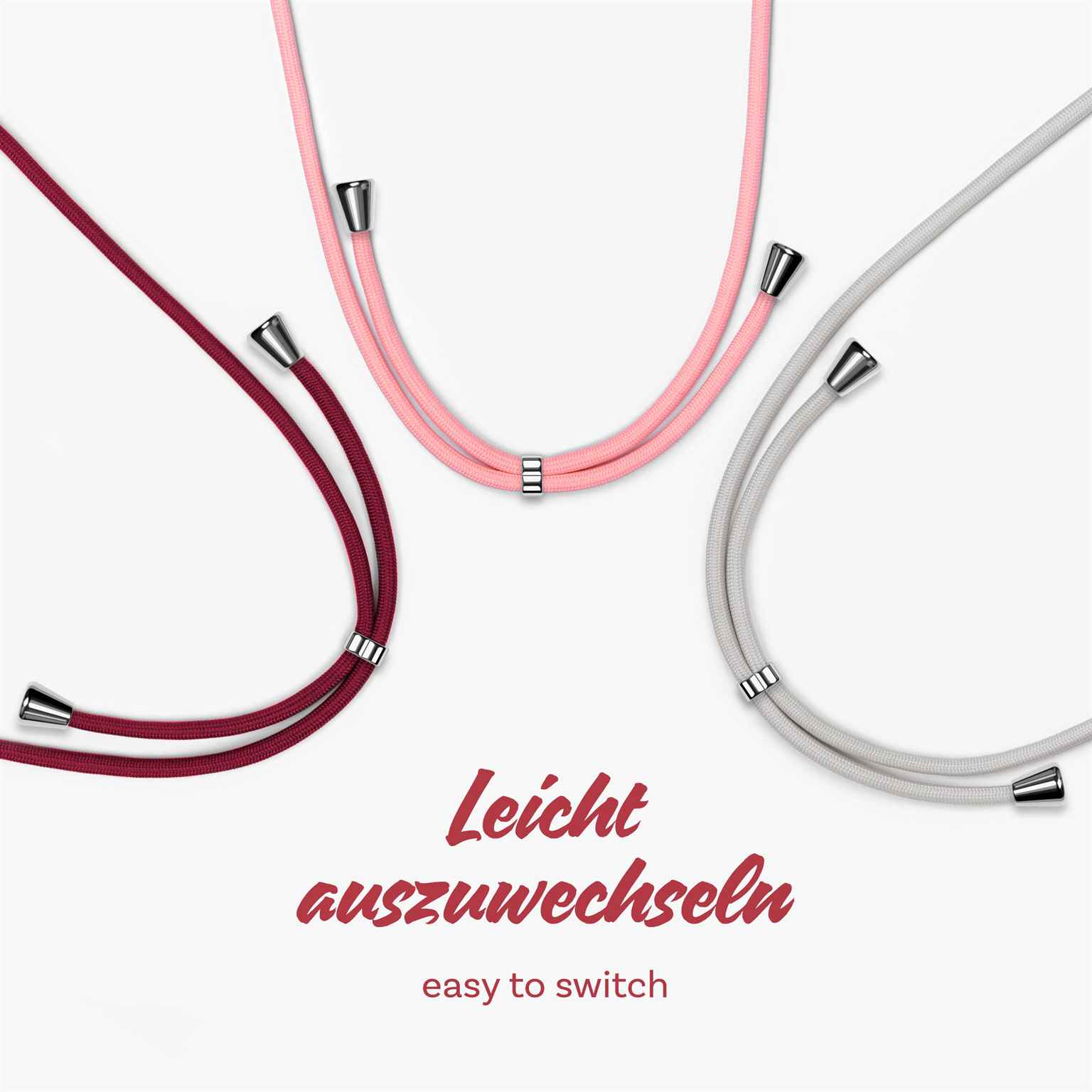 Bunt oder einfarbig, Gold oder Silber, lang oder kurz – Die Schnur des durchsichtigen Handy Covers ist schnell abnehmbar – Extra Handykordel: einfach 'ONEFLOW Ersatzkordel' suchen.
