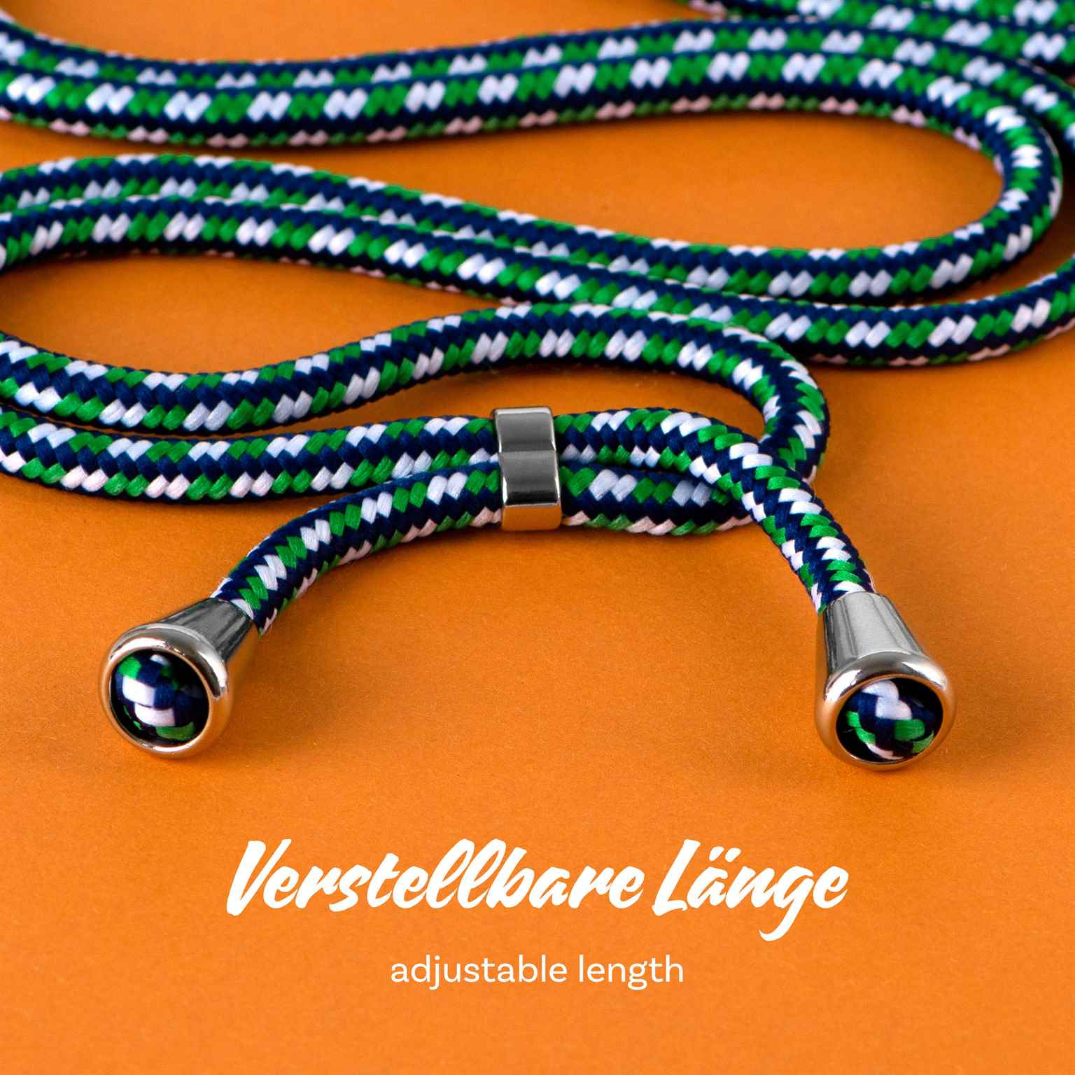 Die ONEFLOW Twist Cord Handykette vereint Funktionalität mit modernem Design und sorgt dafür, dass dein iPhone 11 Pro Max jederzeit sicher und griffbereit ist. Das Handyband besteht aus einer hochwertigen Kordel aus Stoff, die angenehm zu tragen ist und einen sicheren Halt bietet. Die Hülle verfügt über Ösen, wodurch die Handykette abnehmbar ist, sodass du flexibel zwischen klassischer Nutzung oder praktischem Handy Umhängeband wechseln kannst. Die robuste Handyhülle mit Kordel schützt dein Smartphone zuverlässig vor Kratzern und Stößen. Perfekt für den Alltag, auf Reisen oder als stylisches Accessoire bei Events!