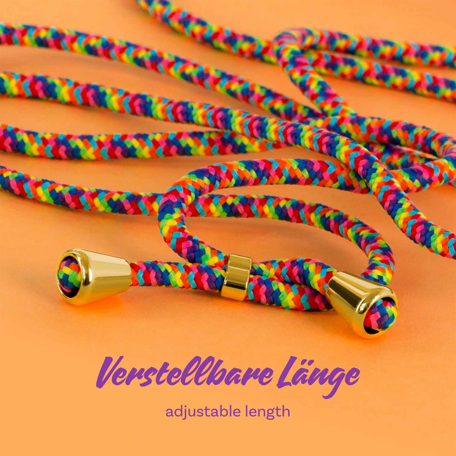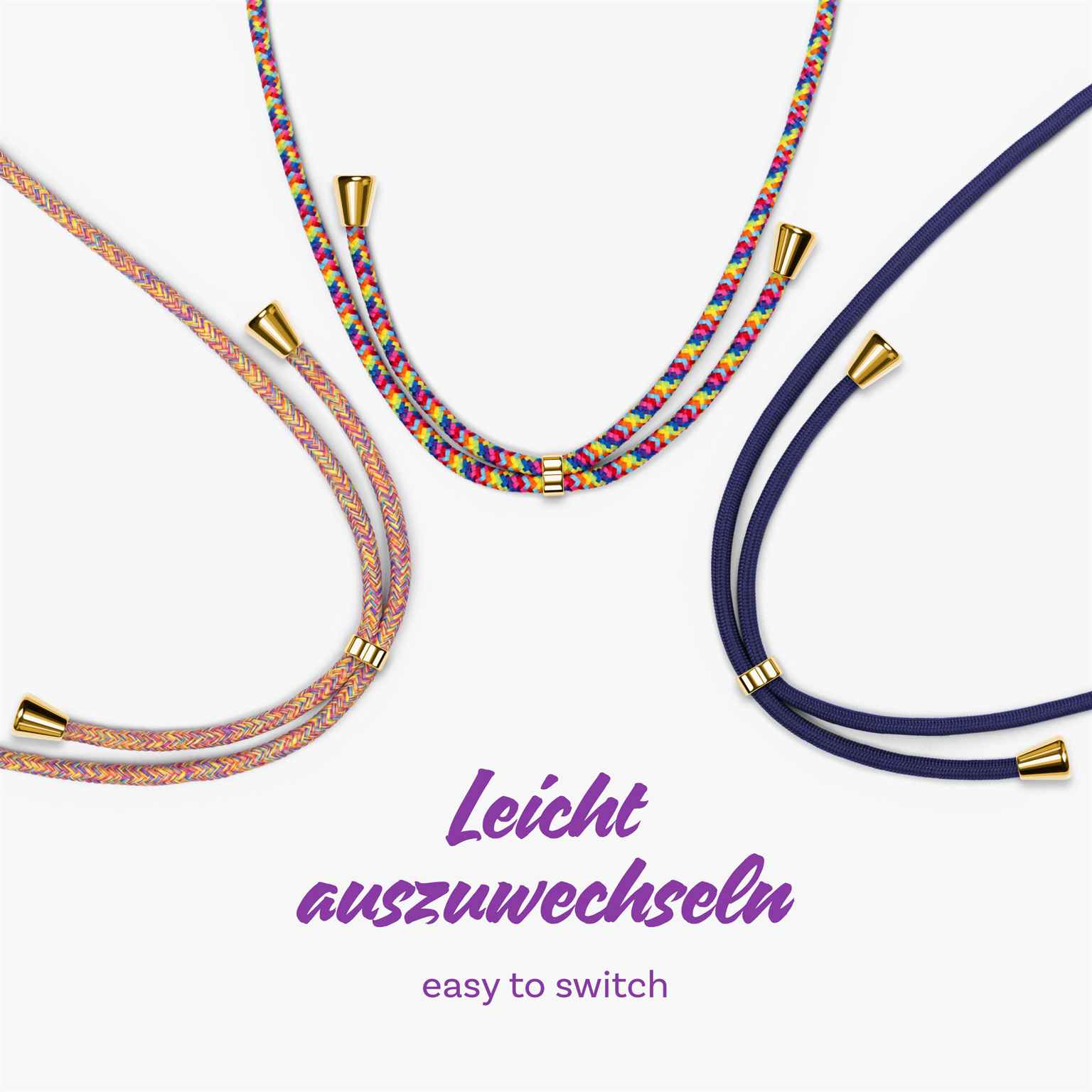 Bunt oder einfarbig, Gold oder Silber, lang oder kurz – Die Schnur des durchsichtigen Handy Covers ist schnell abnehmbar – Extra Handykordel: einfach 'ONEFLOW Ersatzkordel' suchen.