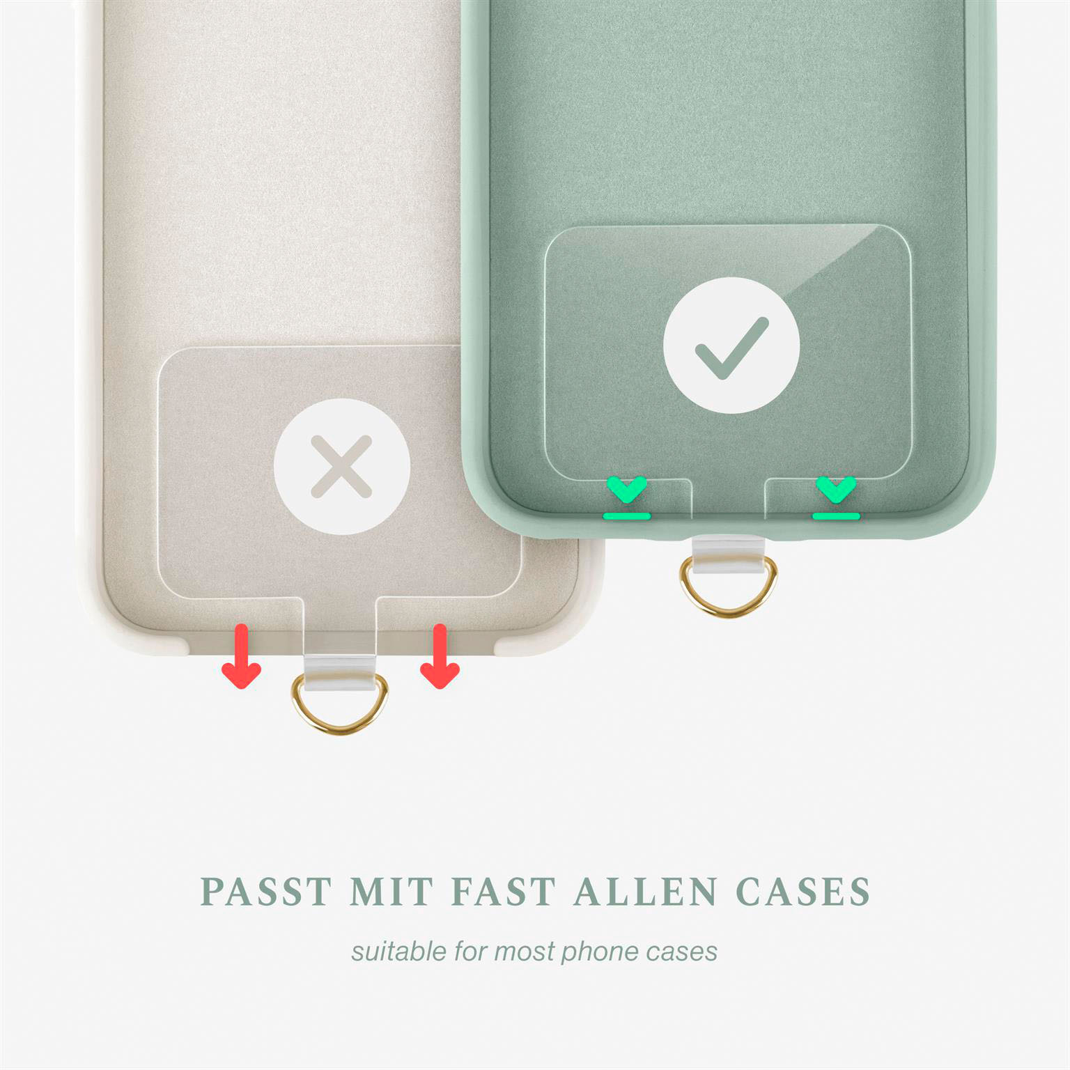 Die Kette passt zu allen Hüllen mit Ösen oder Öffnungen am unteren Rand, z. B. Silikon- oder Hard-Cases.
