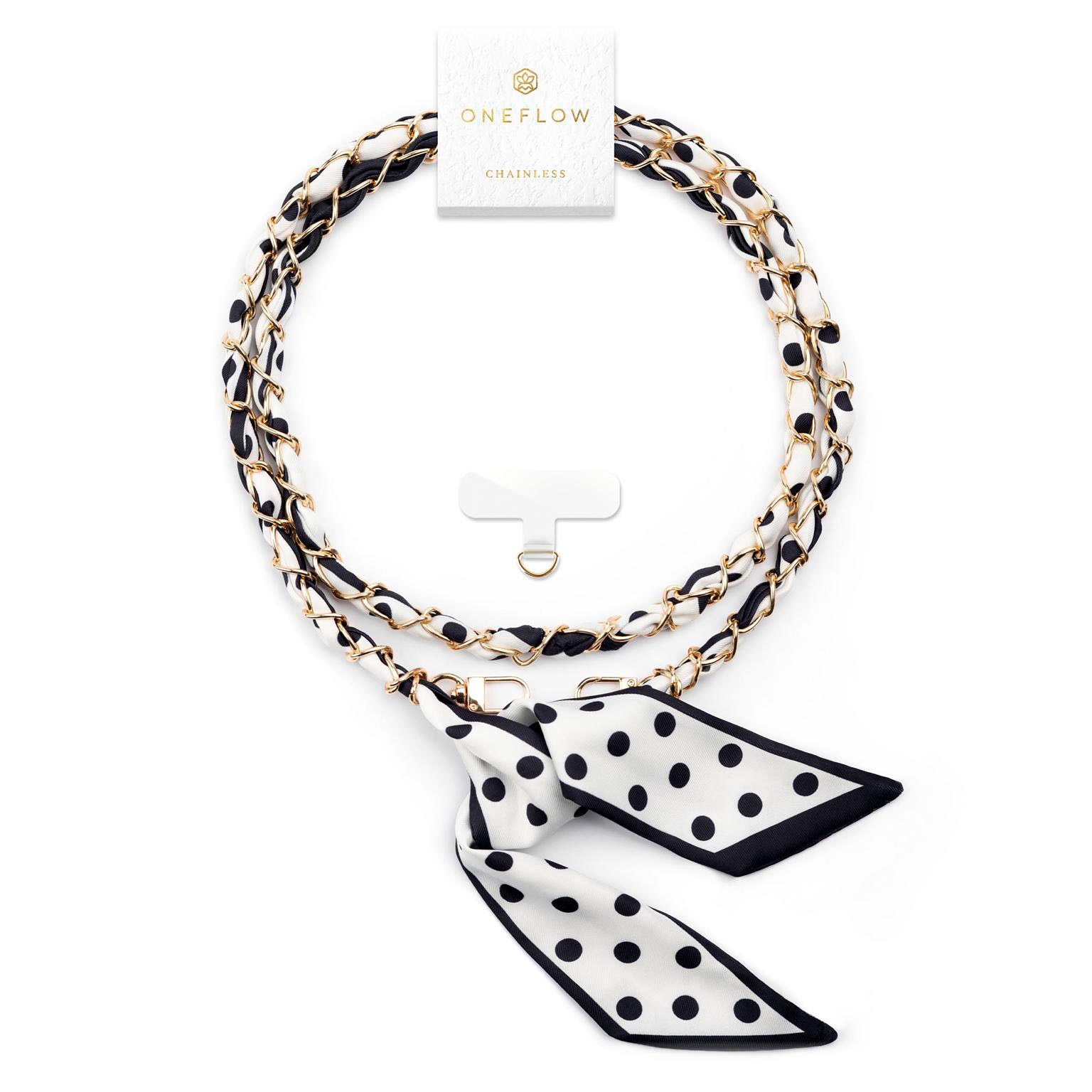 ONEFLOW CHAINLESS Silk Liaison Universelle Handykette mit eingeflochtenem SeidentuchDot Noir (Schwarz)