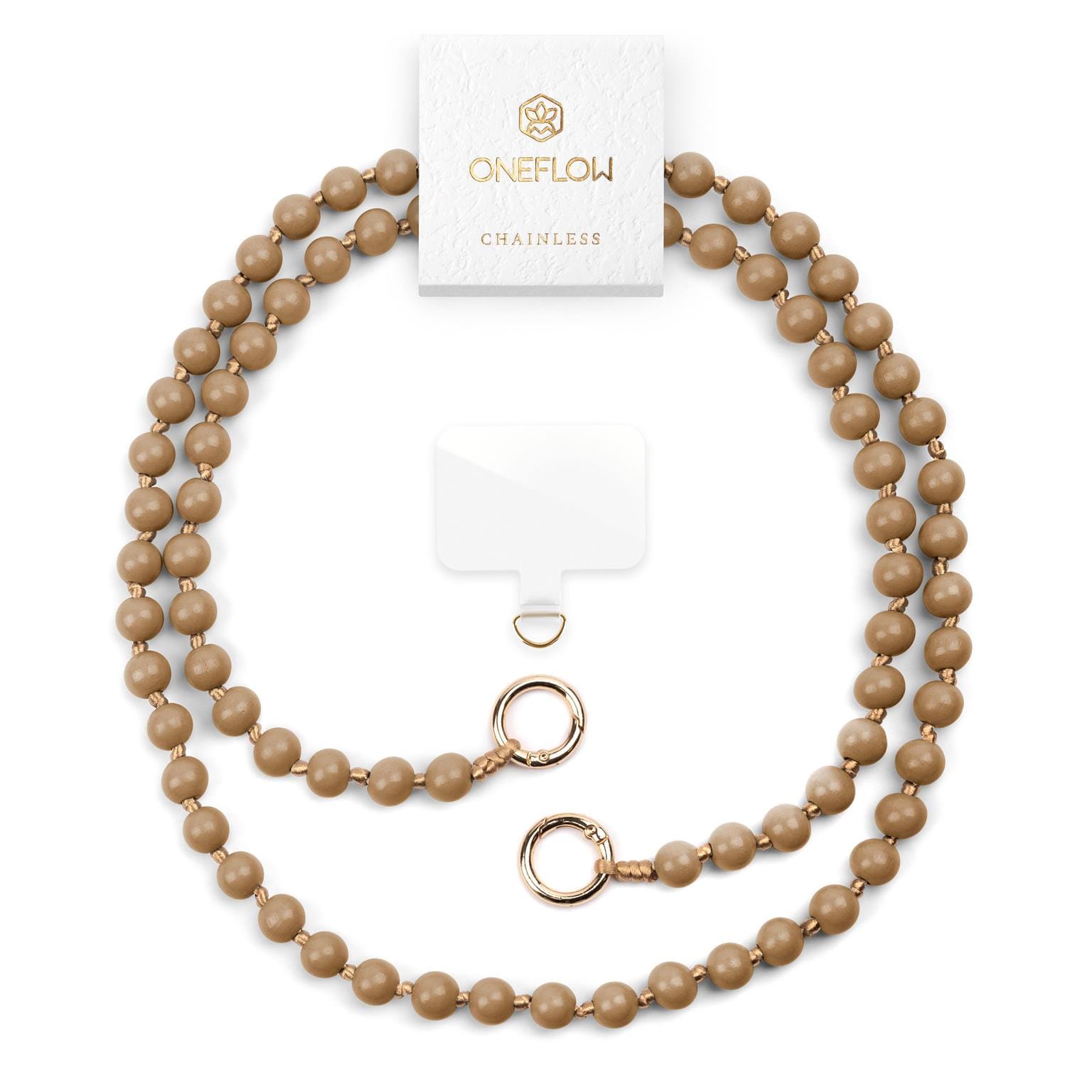 ONEFLOW Universal Handykette Holzperlen abnehmbar – Chainless Terra Chain – Oakwood Timber (Braun / Beige)