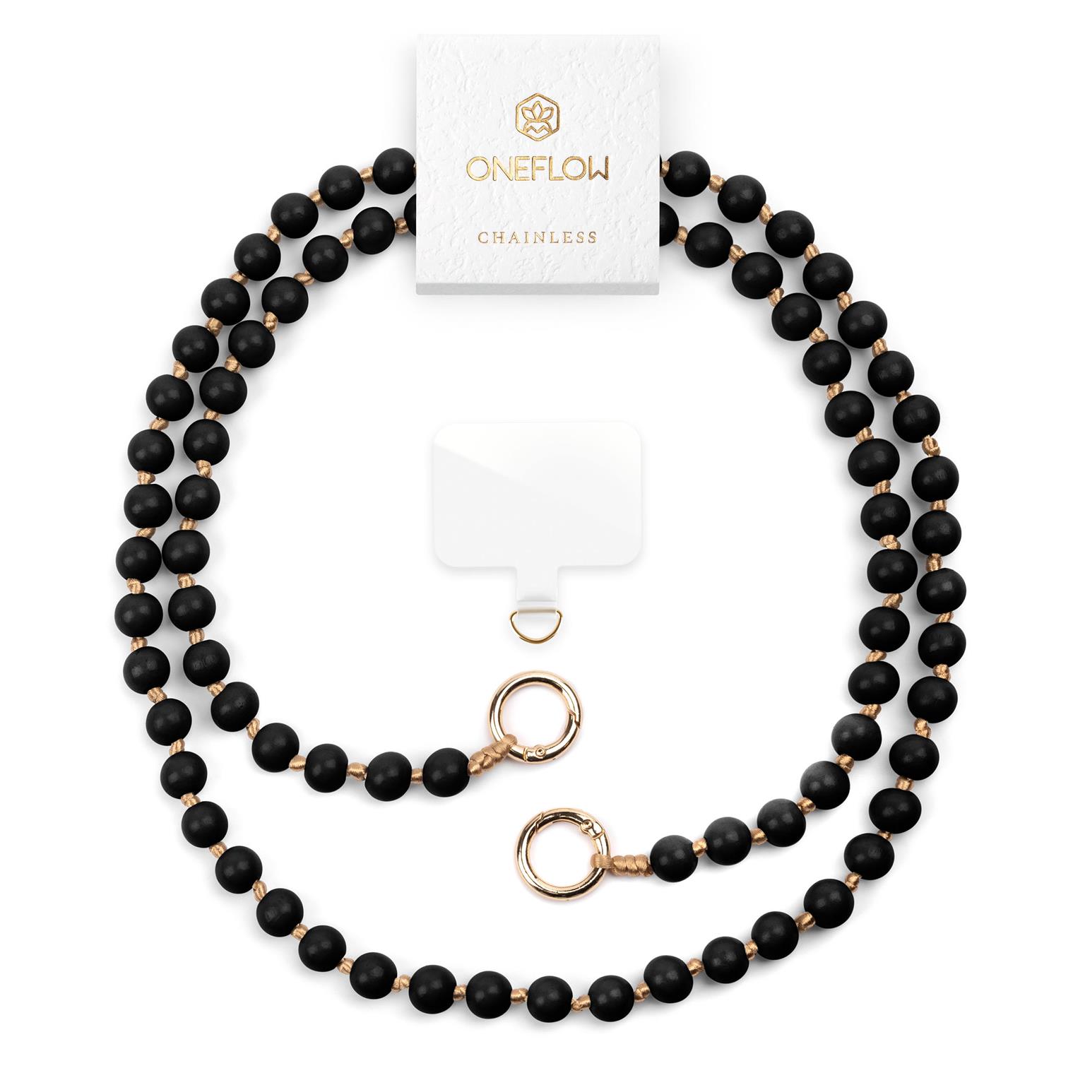 ONEFLOW Universal Handykette Holzperlen abnehmbar – Chainless Terra Chain – Obsidian Black (Schwarz)
