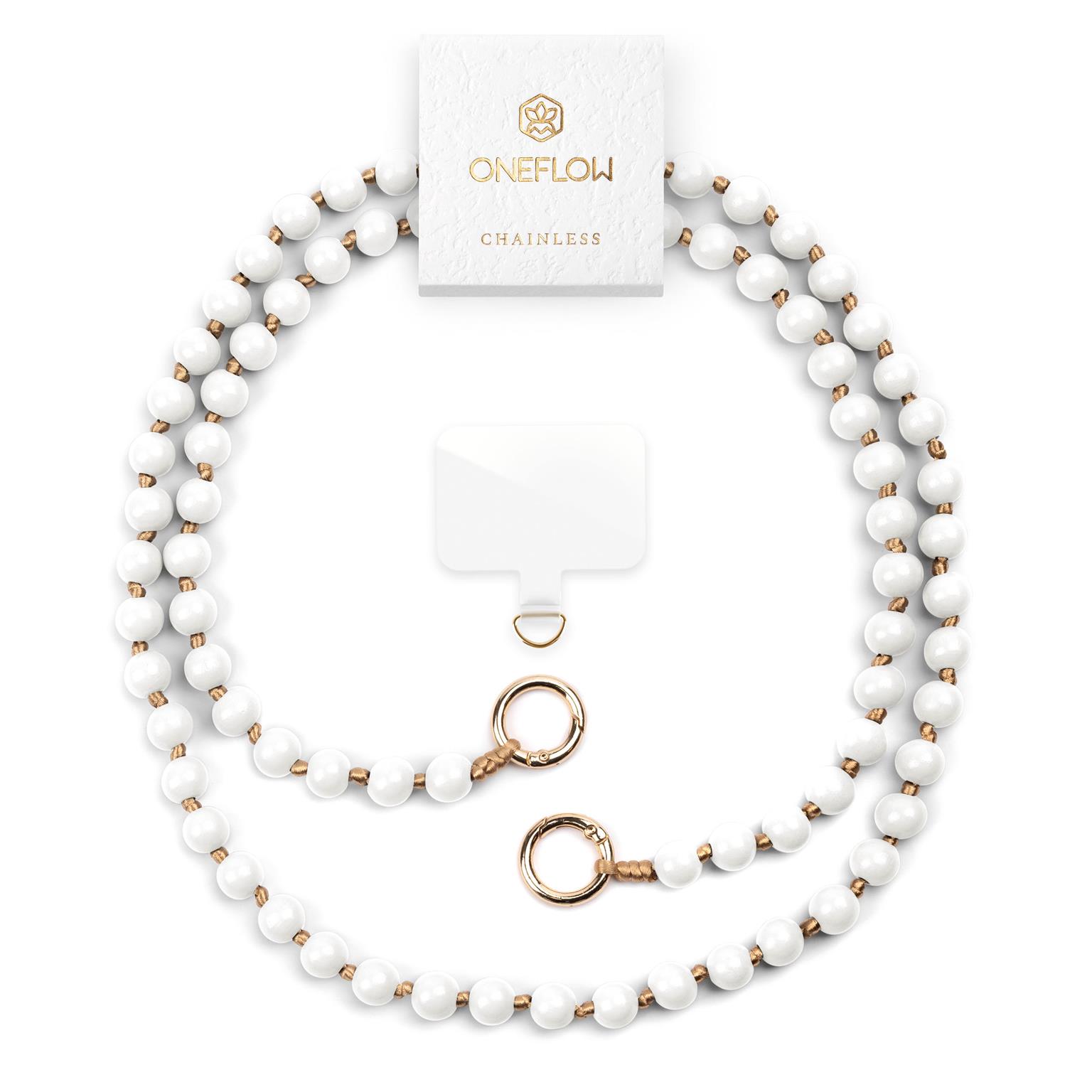 ONEFLOW Universal Handykette Holzperlen abnehmbar – Chainless Terra Chain – Pure White (Weiß)